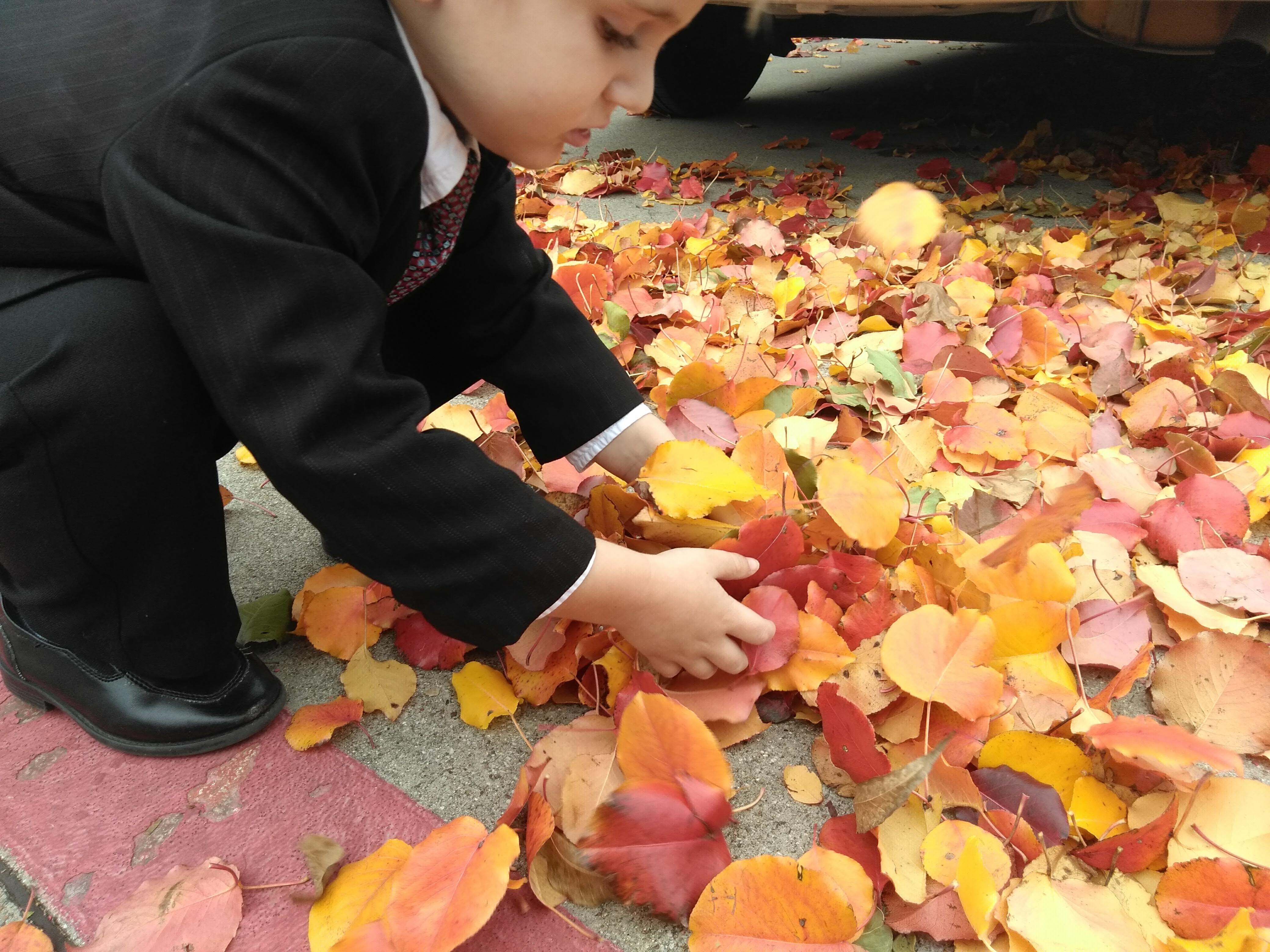 On the way to church, Austin noticed every yellow and red tree.  When we arrived, he delighted in the fallen leaves in the parking lot.  God wants us to delight in his creations, like his little ones do.  Against none is his wrath kindled save those who confess not his hand in all things.  Even the little things.