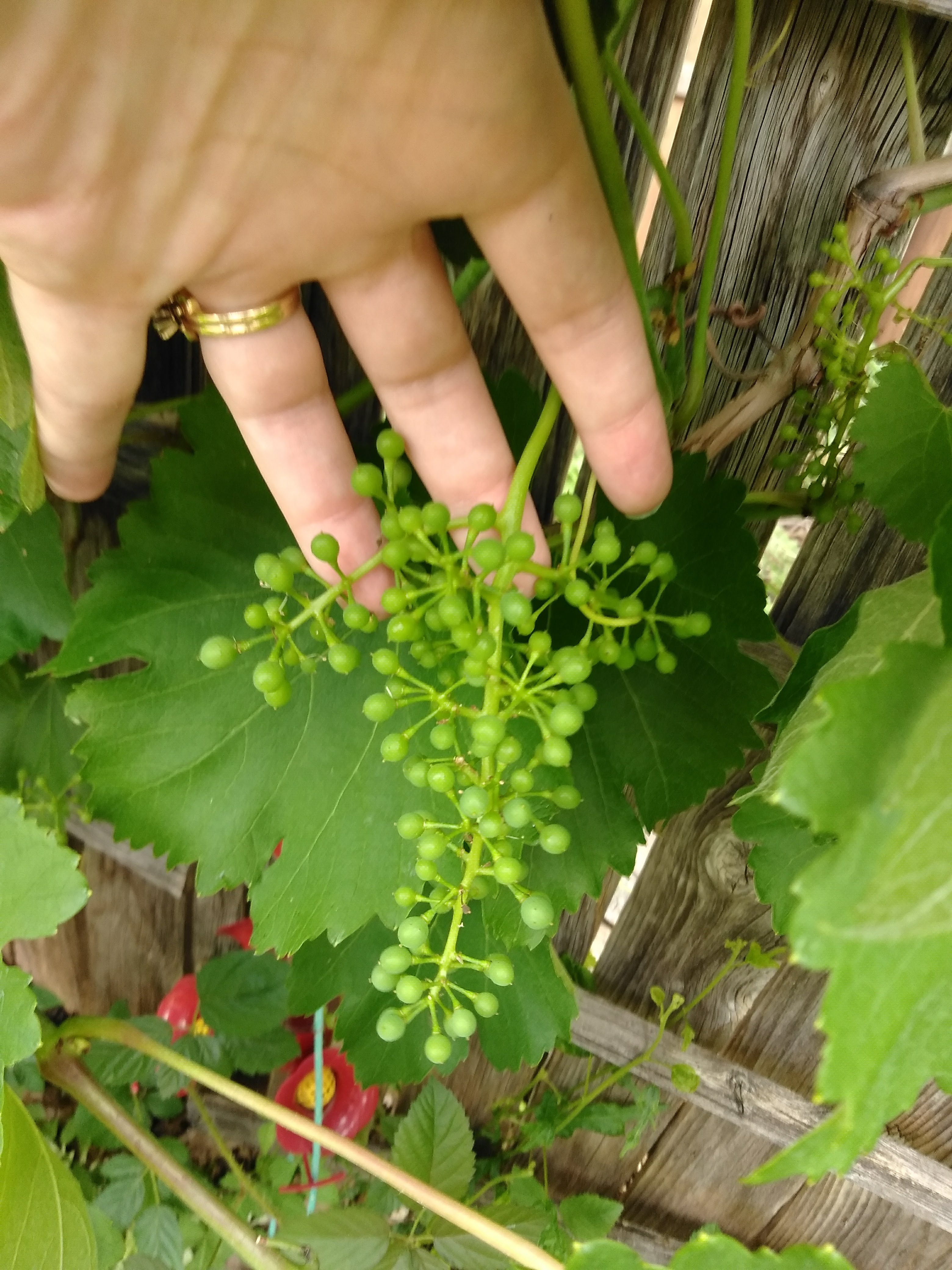 The vine took off that spring and quickly had covered the trellis. Blossoms came, and then tiny grape clusters. Unfortunately, there were so many vines and leaves that the grapes were unable to mature as the plant was putting its energy into producing leaves and vines. The sunlight was also unable to get to the grapes, so they didn’t ripen. Although the vine produced probably fifteen grape clusters, we didn’t get a single edible grape. I was disappointed.