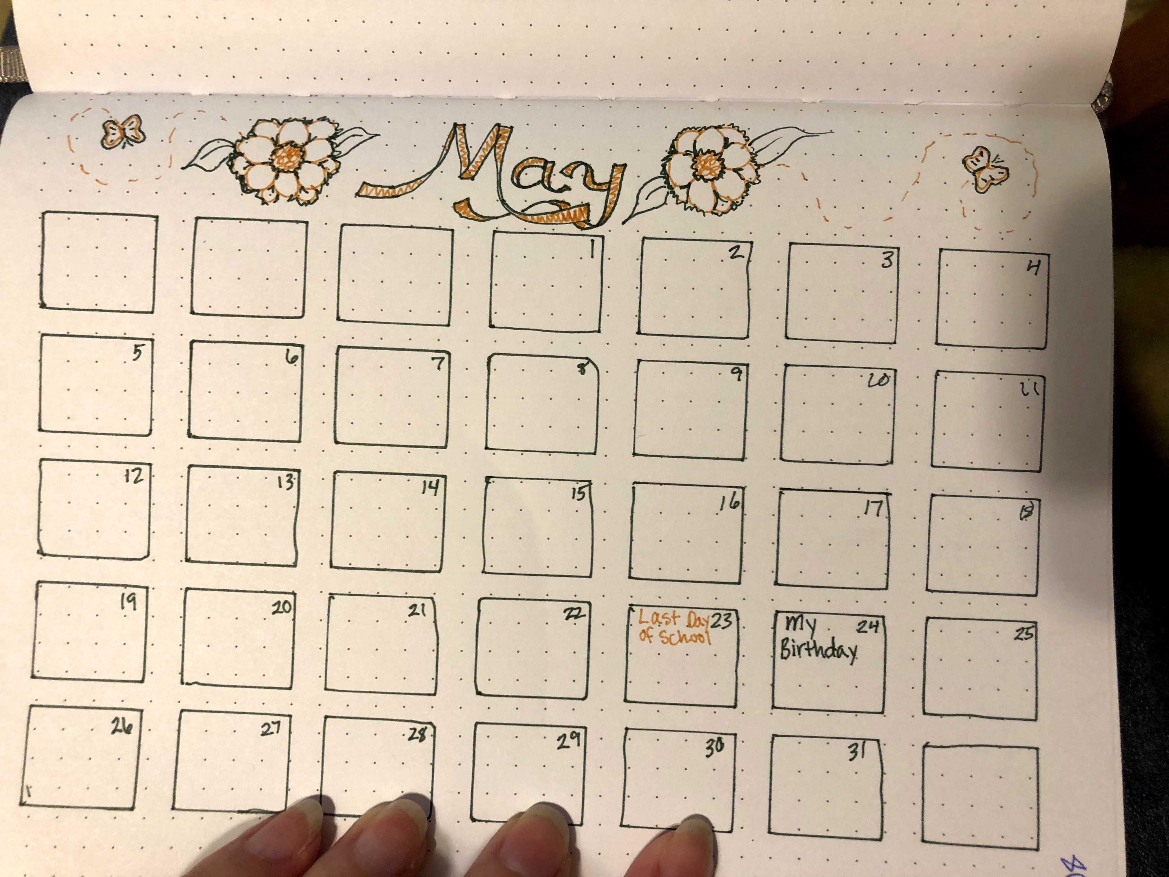 This is the calendar page for this month. It is soon to be filled with all the end of school activities!!