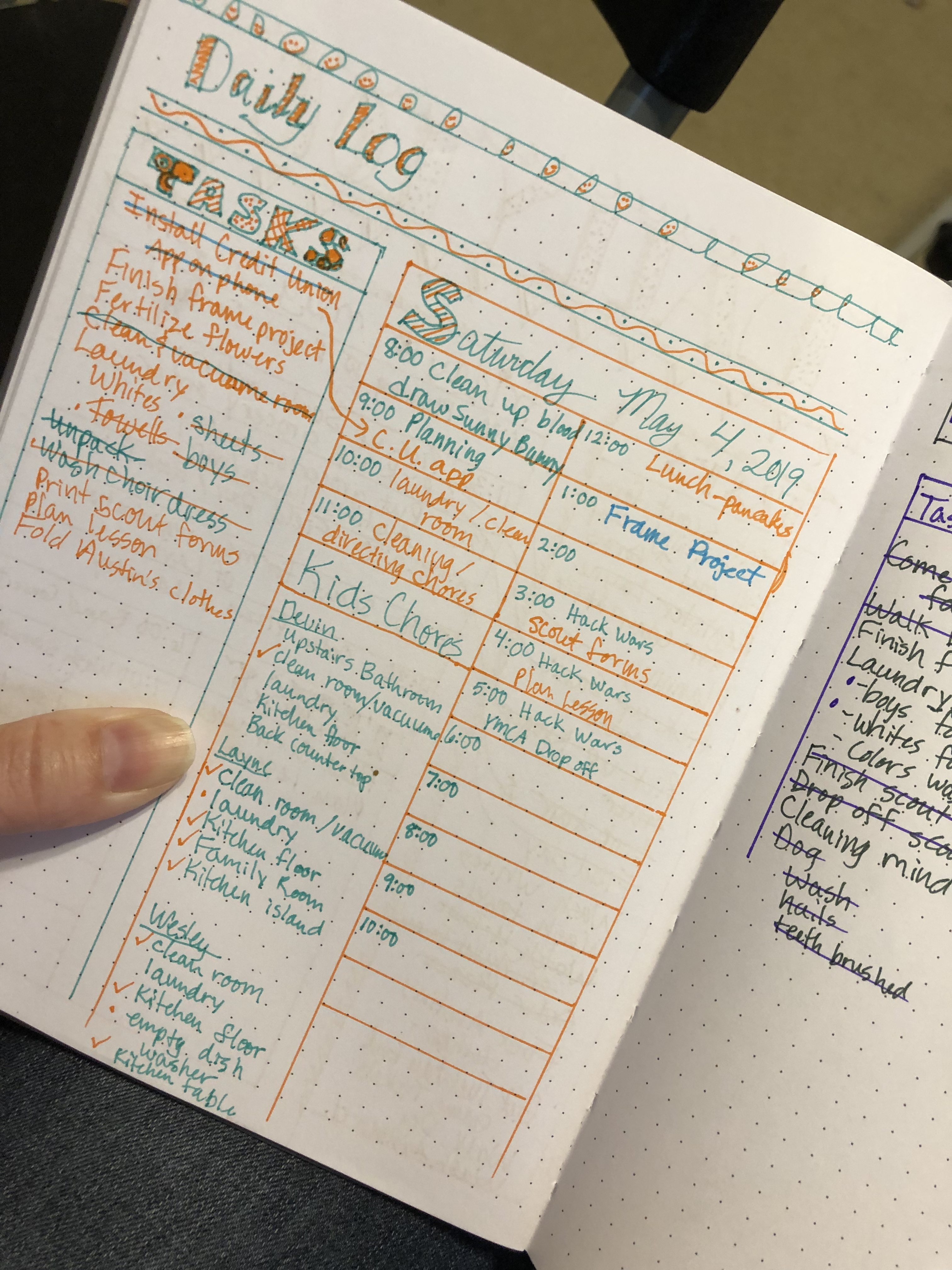 I started a bullet journal last week.  Jessica McCabe has a whole ton of Youtube tutorial videos on why this style of planner is great for ADHD.  You can access them here.  It has really helped me so far.  I can’t believe how much I have been able to get done!  I’ve started thinking, “Wow!  I could start looking like that Mom (fill-in-the-blank) that has it all together!”  Then I have to remind myself that I’m me, and that’s the best.  I don’t have to be together and organized to have value.  If this planner helps me to be more productive, that’s awesome, but it doesn’t define me.