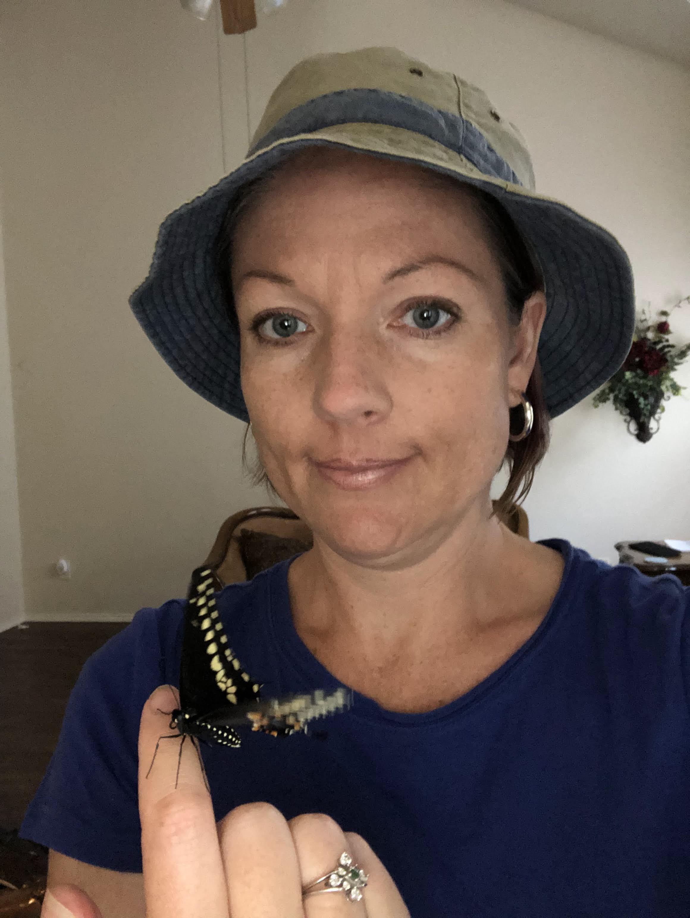 Ben and I raised some black swallowtail butterflies. Saturday I looked in the cage and saw that a butterfly had slipped out of his chrysalis and onto the floor. He was struggling in a wrinkled and mishappen tangle, his abdomen swollen with fluid that could not fill his wings. I picked him up and suspended him for many desperate moments as he made the transition to his new life as a butterfly. Here he is all ready to make his way in the world! As Mother Theresa would say, “Not all of us can do great things, but we can do small things with great love.”