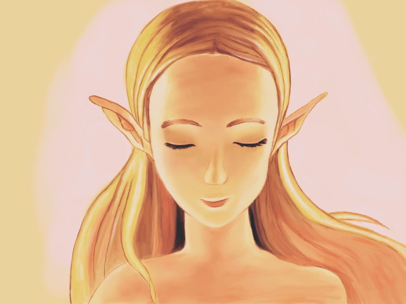 I made this image based on Zelda Breath of the Wild, but I made her naked. To me, she is being reborn as a member of a new kingdom of light and hope.